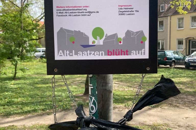 Aufstellung der Ehrenamtsschilder für die Baum/Beetpatenschaften.
