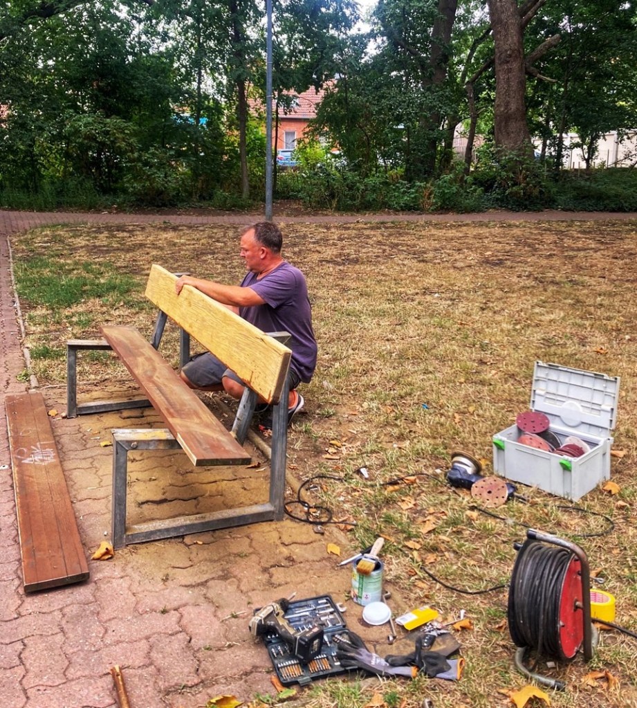 Die ersten Bänke im Park wurden Ende Juli 2022 geschliffen und gestrichen.